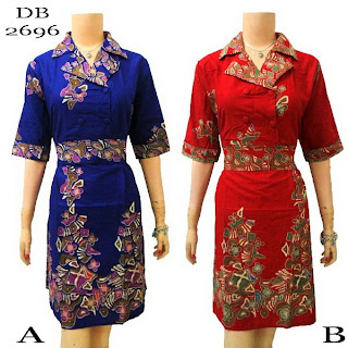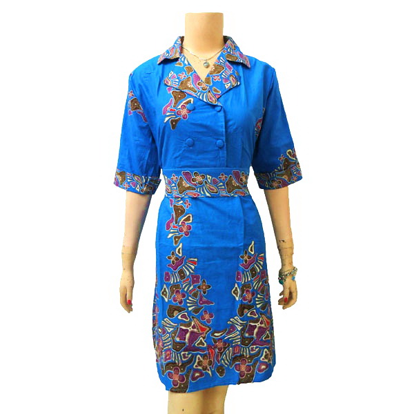 - Dress Batik tanpa kerah, lengan double, aksen kancing di belakang, remple didada dan kerut belakang.