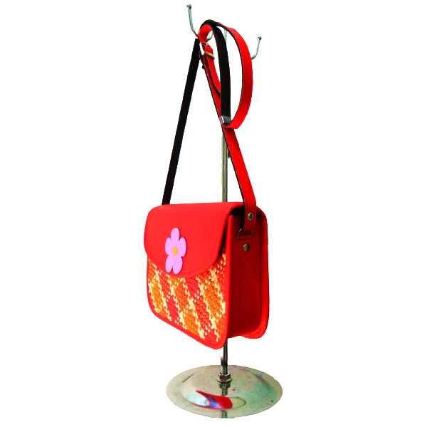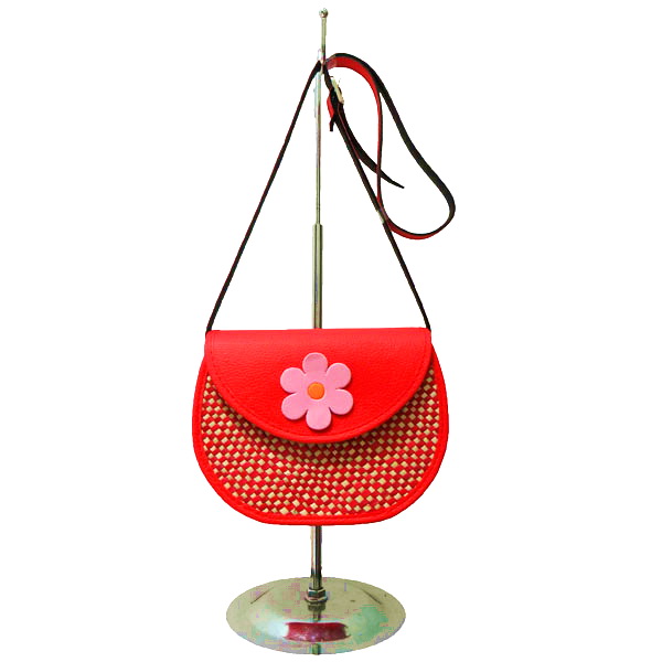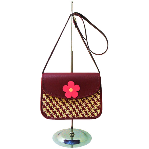 - Tas anyaman dengan bentuk kotak, dengan aksen Bunga.
