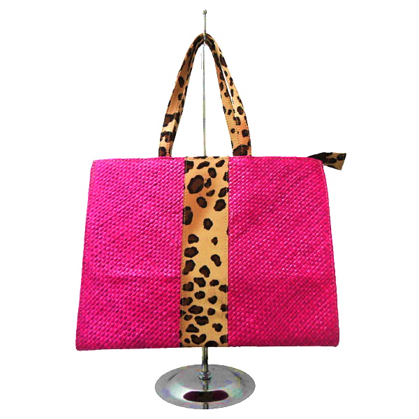 - Bahan tas : Anyaman Daun Pandan dan Bahan bermotif Macan tutul.